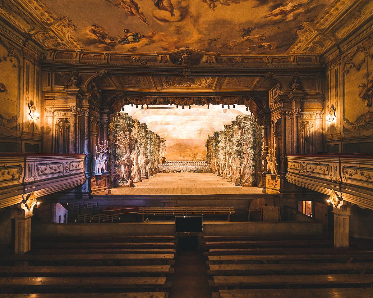 克魯姆洛夫城堡內的巴洛克劇院堪稱奇蹟。這座從17世紀保存至今的劇院,擁有完整的舞台機械、佈景裝置,甚至數百件當年的戲服。站在舞台上,你會感受到時光的停滯——這裡的木頭座椅、燭台、甚至空氣中的塵埃,都在講述著巴洛克時期的音樂故事。