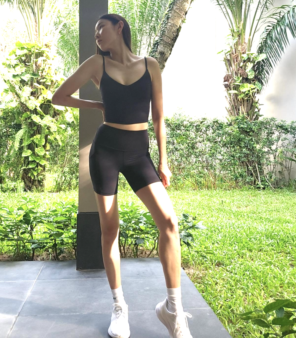 即使工作再忙,只有碎片時間,她也會見縫插針地進行弓箭步、臀橋或平板支撐。為了維持翹臀,她堅持每天完成100次半蹲。