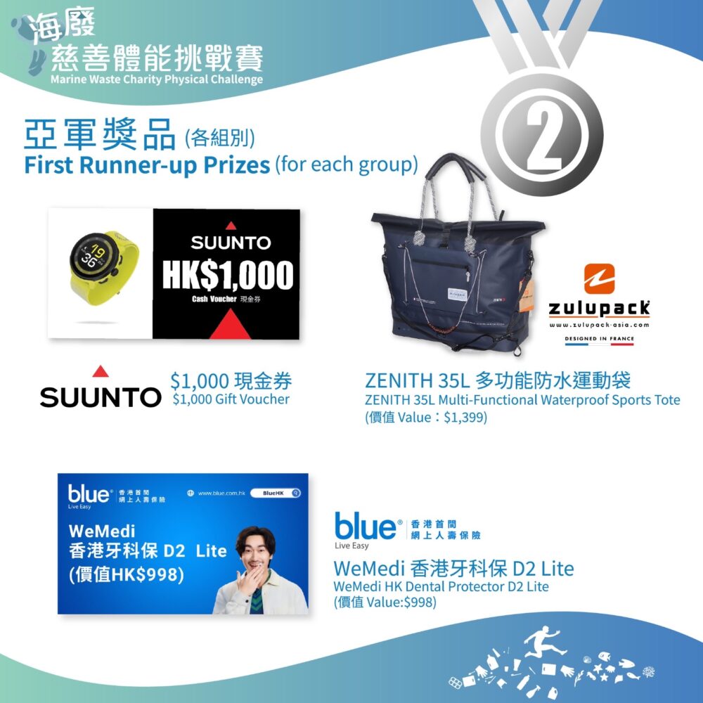 每位報名者均獲大會紀念禮品,前三名更可獲頒精美獎品及獎盃!全場總共設置多個獎項,不同組別可獲得的獎品相當豐富!