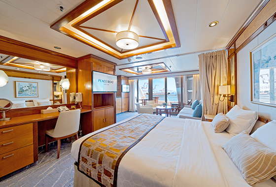 和平船 Peace Boat 為聯合國的可持續發展目標(SDGs)的成員。其中最重要的目標是希望喚醒大家的意識來保護地球與終結貧窮。和平船搭載著可持續發展的標誌出航,並且以船上或在停靠港的一些企劃活動來鼓勵大家一起為這些目標努力。 在航程中你可以接觸到不同的文化,價值觀和社會,這可以挑戰您對自己所居住地域的了解 , 船內和岸上的實際體驗活動旨在豐富乘客的生活,促進可持續性,並跨越國界和語言建立持久的友誼。