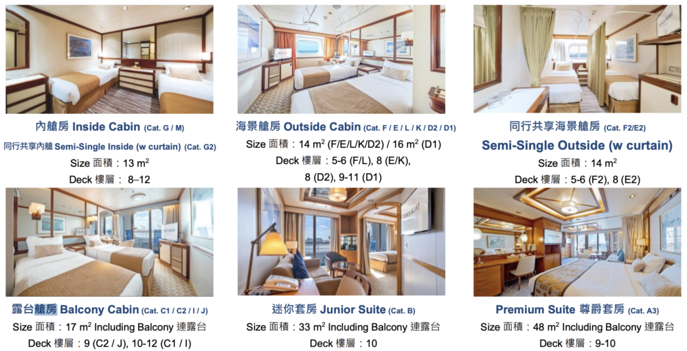 ・ 艙房內免費迷你吧(酒精飲料除外)