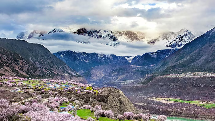 每年三、四月,當中國大部分地區才剛迎來初春的暖意,在世界屋脊的青藏高原上,一場最為壯麗、最為浪漫的春日盛宴已準時上演。這裡是西藏林芝,一個被譽為「西藏江南」的地方。此時,海拔近三千米的山谷與田野,會被數以萬計的野生桃花染成一片浩瀚的粉紅海洋。這不是精緻的園藝展,而是一場大自然揮灑的、帶著雪域氣魄的磅礴花事——雪山為幕,碧空為襯,桃花如灼灼火焰,在極致荒涼與極致絢爛之間,書寫著生命的奇蹟。