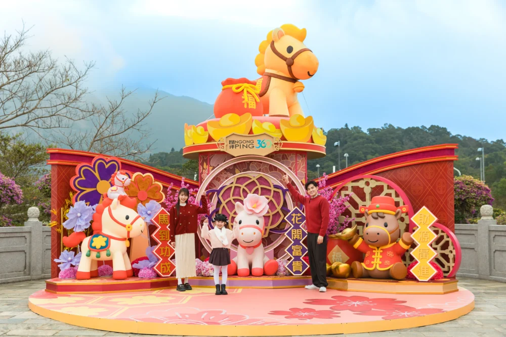 在昂坪市集各處帶來祝福滿滿的萌爆駿馬「打卡位」,堪輿學家麥玲玲師傅亦參與新春裝置設計。昂坪市集圓形廣場設有大型新春裝置「金駿報喜迎新春」,五匹駿馬分別穿上賀年唐裝、戴上粉紅色花朵、染成紅色鬃毛,以及披上「福」字馬鞍,以可愛新春造型出現,象徵「五福臨門」。由即日起至1月30日,賓客可於昂坪360官方網站選購「雙重暢遊」優惠,以一張來回纜車(標準車廂)門票的價錢,在3月底前乘搭兩次來回纜車(標準車廂),優惠適用於成人、小童及長者來回纜車(標準車廂)門票。