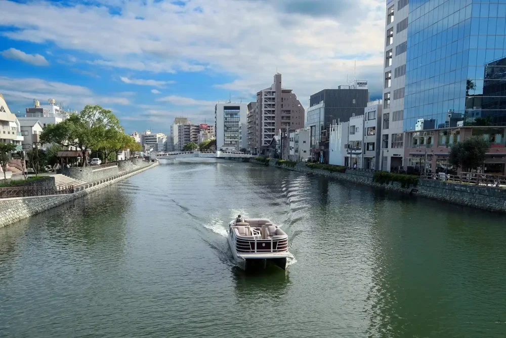 從空中俯瞰德島市中洲,會發現它的形狀像一個葫蘆 —— 日文裡稱為「瓢簞」。這座城市因此得名,而最好的欣賞方式,就是從水面上出發。