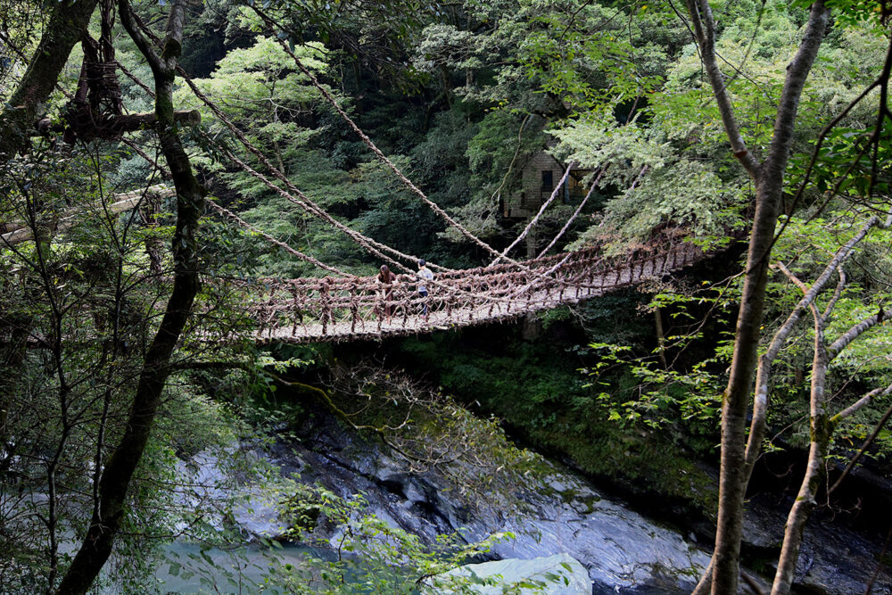 在德島縣那片被陡峭四國山地環抱的祖谷秘境中,有一座橋,靜靜橫跨在祖谷川之上。它是葛藤橋,全長四十五公尺,寬兩公尺,距離河面十四公尺高,由約六噸的白藤葛藤編織而成。橋面縫隙間可以直接看見腳下奔流的溪水,走在上面,吊橋輕輕搖晃,那份恰到好處的驚險刺激,正是這座橋獨有的魅力。