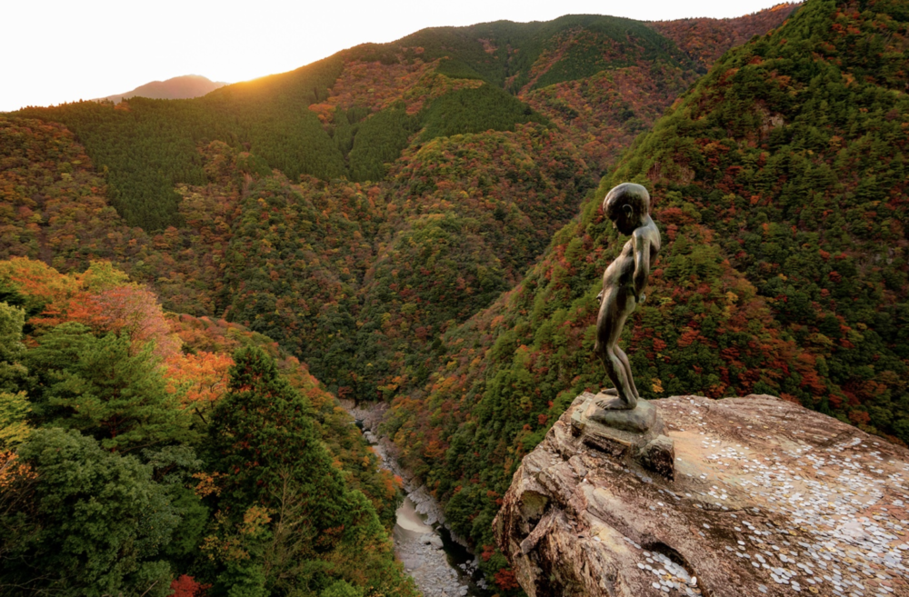祖谷溪的象徵——小便小童雕像,就立在一個高達二百公尺的突出岩石上。這個可愛又帶點頑皮的小童,訴說著昔日小孩和旅人在此比試膽量的逸聞,如今已成為旅人必到的打卡熱點。