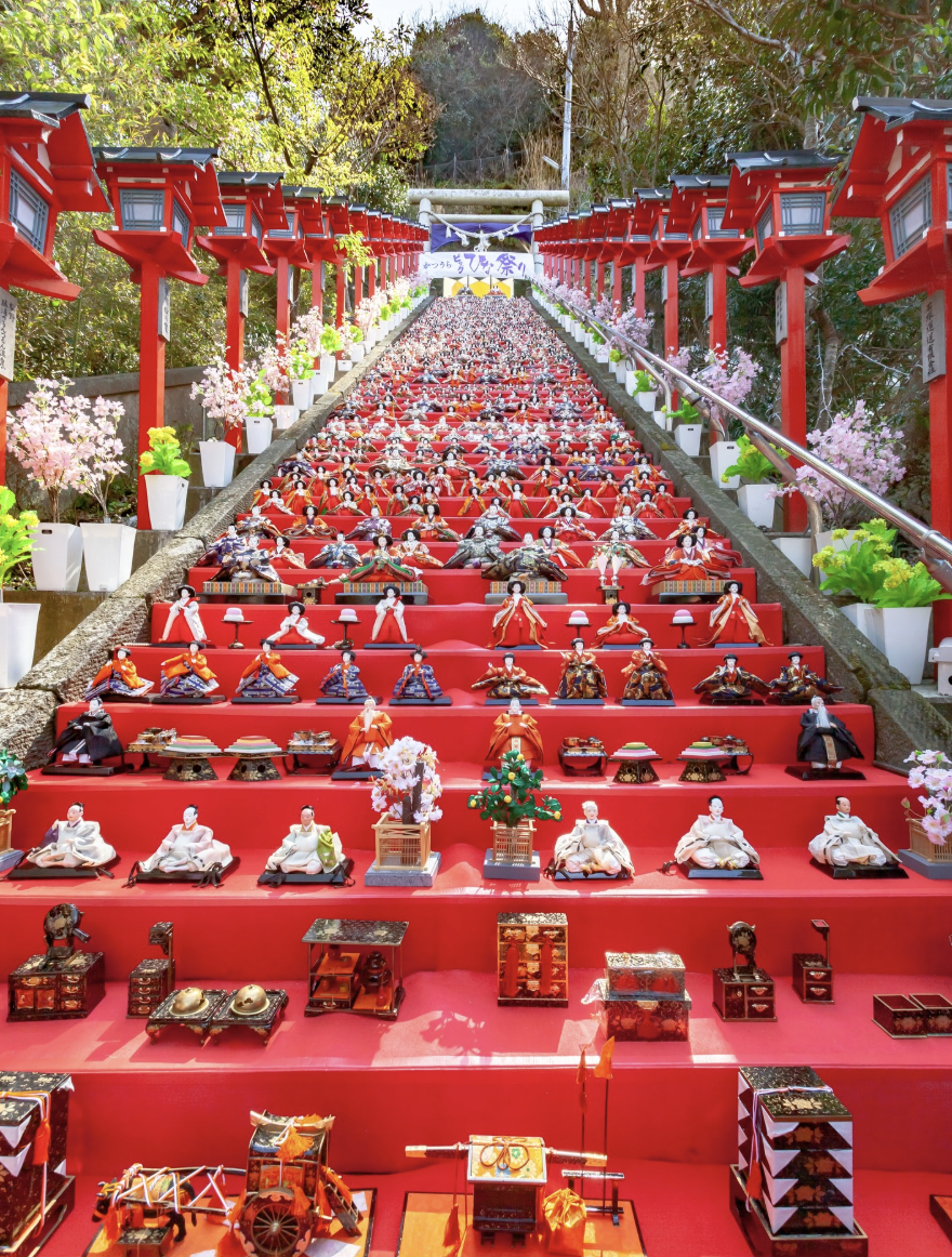 在德島縣,勝浦郡的坂本八幡神社每年都會舉行獨特的女兒節祭典。這裡保留了「流し雛」的古老傳統,同時也展示著各式各樣的現代雛人形,讓人在粉紅色的季節裡,親眼見證這份祈求女孩幸福的溫柔心意。
