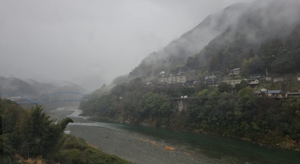 從閃閃光芒的吉野川順流而下,遊覽船緩緩前行。兩岸高聳的岩壁近在咫尺,岩石的紋理清晰可見,那是時間的刻度,是一億年地質變動的痕跡。船下清澈優雅的水流靜靜流淌,翡翠綠的色澤在陽光下變幻著深淺。