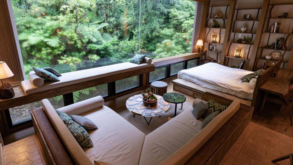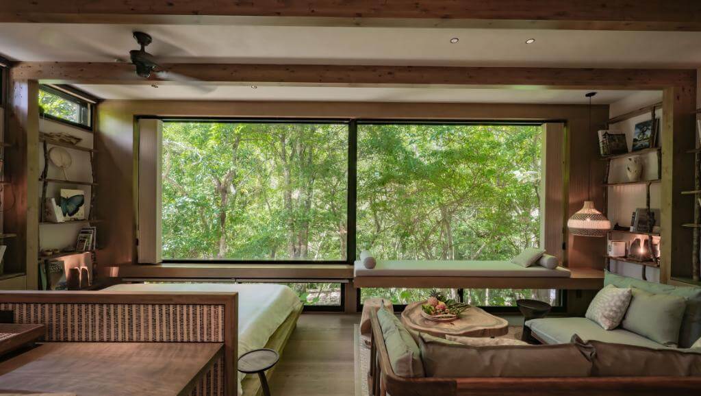 這座位於沖繩山原國立公園的度假村,由一間間特製木屋組成,四周被綠樹包圍。每間樹屋都建於離地一定高度,設有旋轉樓梯方便上落,外型美觀之餘亦不會干擾附近棲息的動物。設計以配合自然環境為前提,採用碳中和太陽能板現場發電,實踐綠色環保理念。