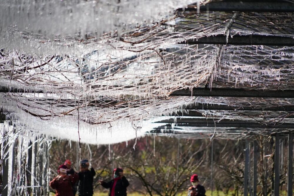 在武陵農場,還可以見到藤花園結冰,形成美麗的「藤花園冰柱」。
