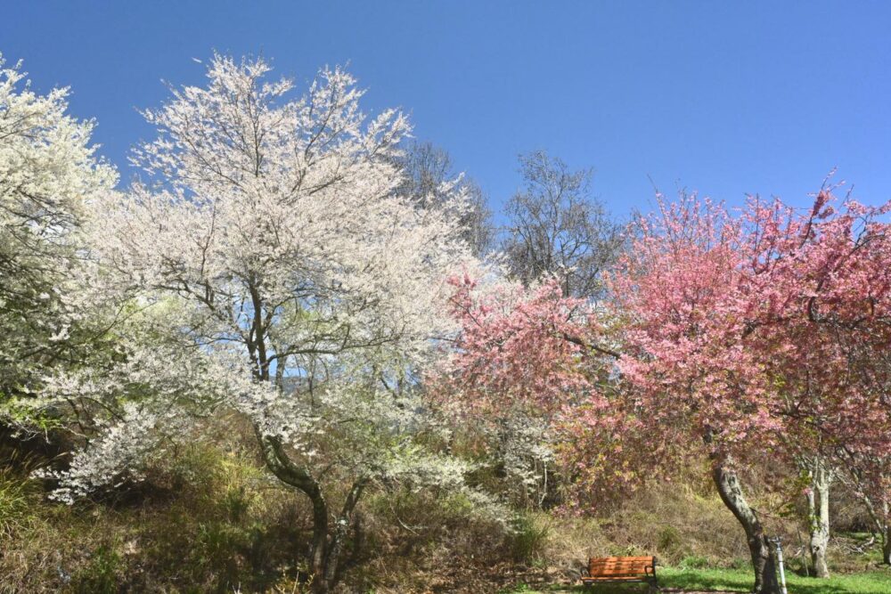 深入探索這座雲端花園,主要可以分為兩大核心區域,各有千秋。佔地最廣、名氣最響亮的是千櫻園,這裡擁有約8公頃的開闊場域,數千株富士櫻在此迎風搖曳。當微風吹過,花瓣隨風飄落,形成震撼的櫻花雨,是所有愛好大場景攝影的遊客絕對不能錯過的夢幻熱點。
