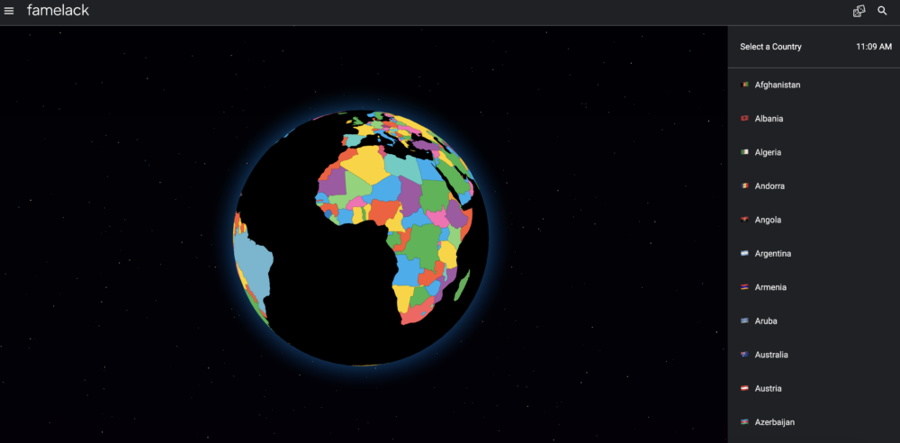 Famelack最吸引人的地方是其視覺化的操作體驗。進入網站後,用戶會看到一個色彩繽紛的3D地球儀,可以用滑鼠自由旋轉、拉近拉遠。當你點擊某個國家或城市,系統會即時顯示該地區可供觀看的電視頻道清單,點擊即可開始播放。這種設計將看電視變成一場探索世界的旅程,讓人不禁想「看看地球另一端正在播什麼」。