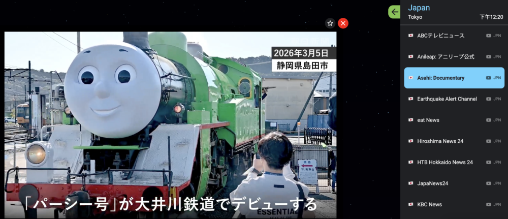 平台同時提供側邊欄分類功能,用戶可以按新聞、體育、文化、自然、兒童等類別篩選頻道,也可以使用「隨機頻道」功能,讓系統隨機推薦一個來自世界某個角落的電視台,充滿驚喜感。