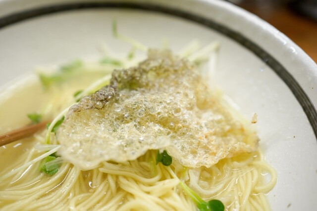 這家店最具代表性的餐點是鯛鹽拉麵。其湯頭清澈卻帶有濃郁的海鮮甜味,口感清麗淡雅,完全不油膩 。拉麵的配料也很有特色,會放上一片炸得酥脆的鯛魚皮,店員會貼心提醒在魚皮最酥脆的時候品嚐 。由於湯頭風味溫潤,非常適合不喜歡過於濃郁湯頭的人 。