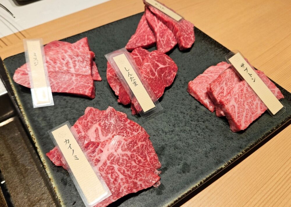阿波牛是在德島縣內育肥、血統明確的黑色和牛,必須在日本食肉格付協會的規定下達到A5、A4、B5、B4以上規格,才能被賦予這個名字。而焼肉割烹のべ,正是由德島縣南部專注飼育阿波牛的「のべ牧場」直營,因此店裡能端出的部位,自然與別處不同,連貝之身、牛臀肉這類稀少部位也能在這裡找到。