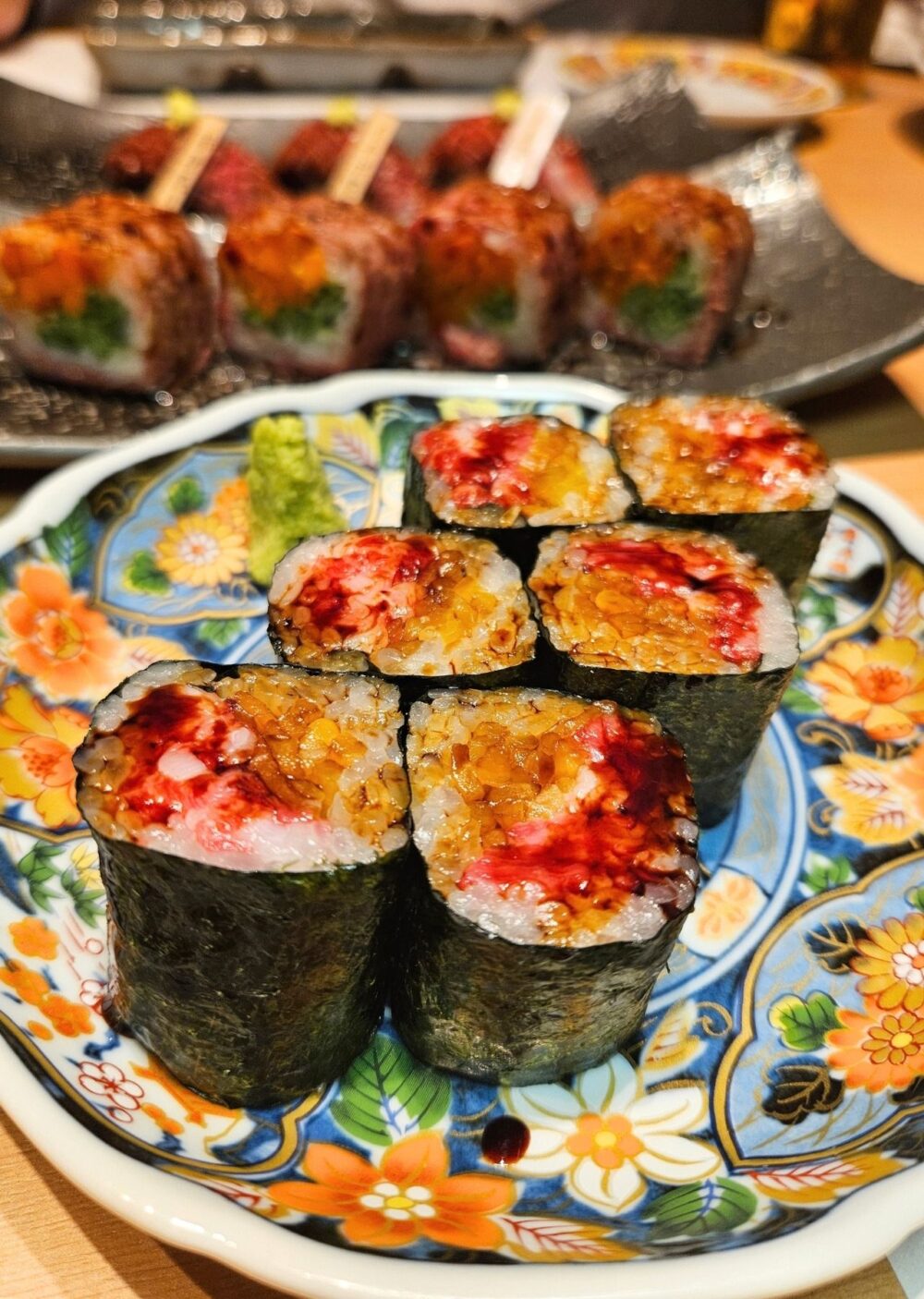 入口的瞬間,油脂的甜味慢慢滲出,伴隨著牛肉本身細緻的纖維質感。沒有想像中的腥氣,反而是一種純淨的、近乎透明的鮮甜。醬油與山葵在這裡扮演著恰到好處的配角,不是為了掩蓋什麼,而是將牛肉本身的風味輕輕托起。