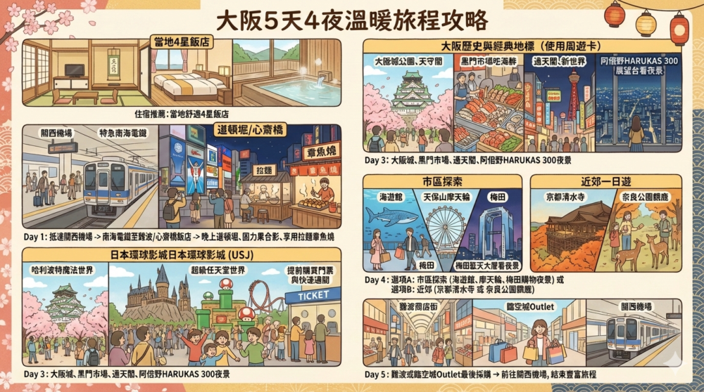 頁首設計: 在地圖頂端設計一個裝飾性橫幅(Banner),清楚標示此次旅行的主題名稱與總天數區間。