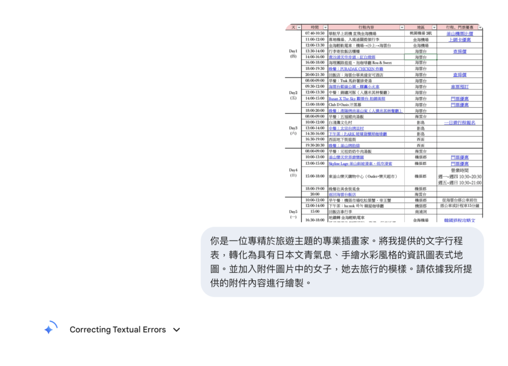 如果你習慣寫行程,可以先在Word或Excel簡單記錄行程,然後交給Gemini整理(或者直接使用自己的文件檔亦可)。