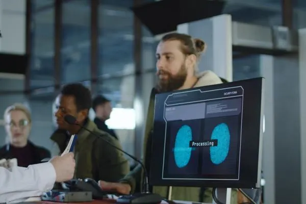 2️⃣ 指紋採集:旅客需按下手指指紋供系統辨識。