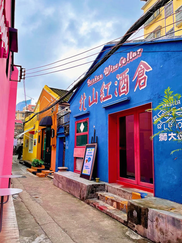 走進北山,映入眼簾的是滿滿多巴胺色彩的彩繪街道。