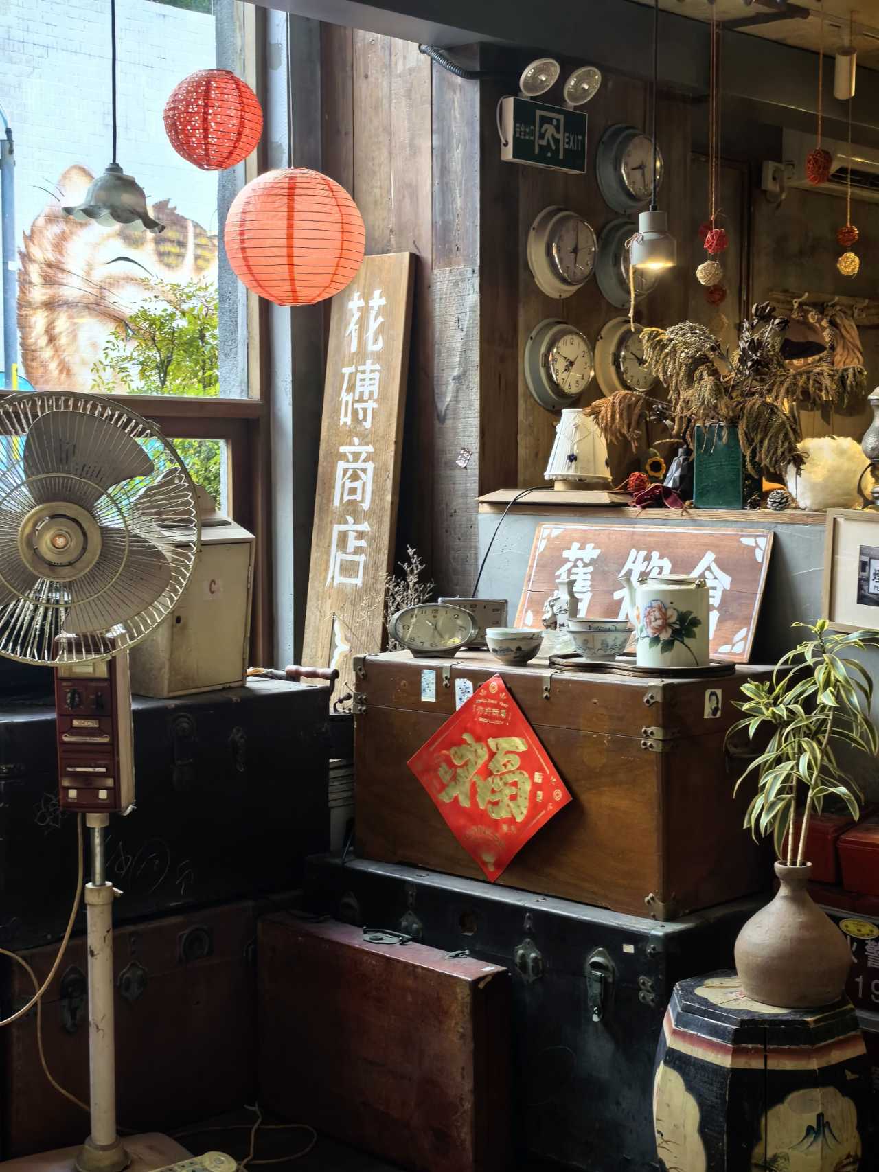 除了花磚,舊物倉還收藏了大量舊生活器物:檯燈、自行車、花磚、打字機⋯⋯愛舊物的人,可以在這裡慢慢淘上半天。