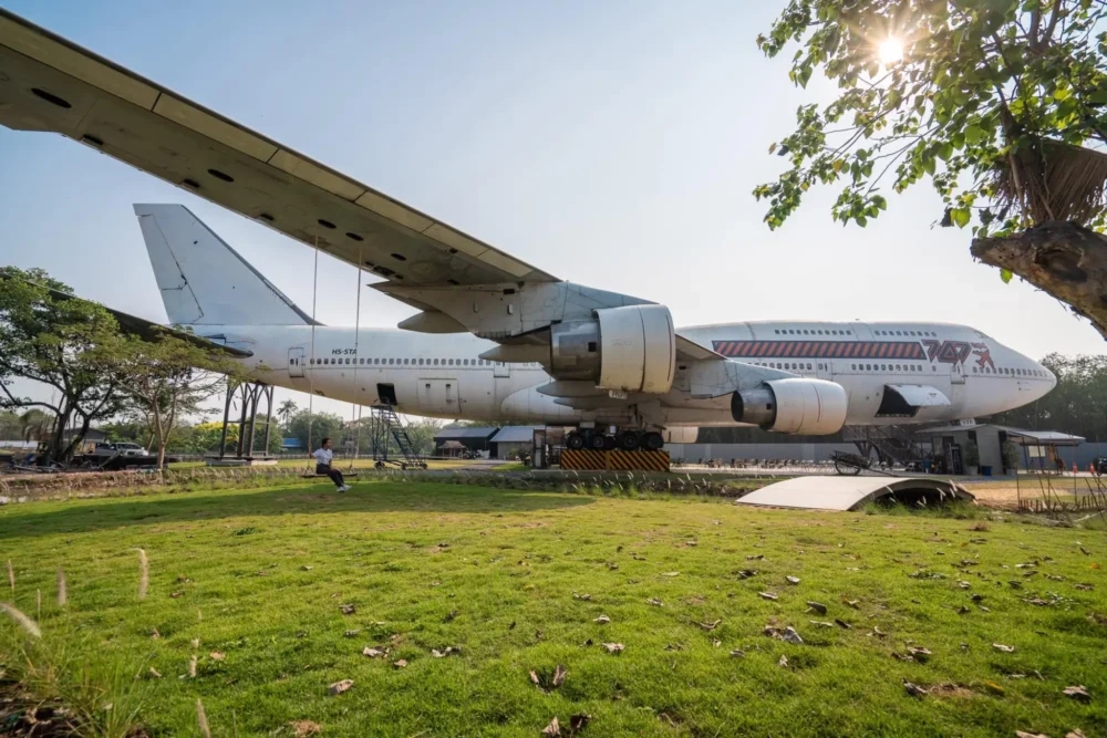 兩位狂熱航空迷 —— 綽號「飛行員Johnny」的 Bandit Lawanrattanakul 與 Nithiroj Chawalertwattanachai,攜手將一架 退役波音747客機 改造成全曼谷最獨特的咖啡廳!佔地約 1.6公頃,一開幕就吸引無數飛機迷與咖啡控前朝聖打卡。