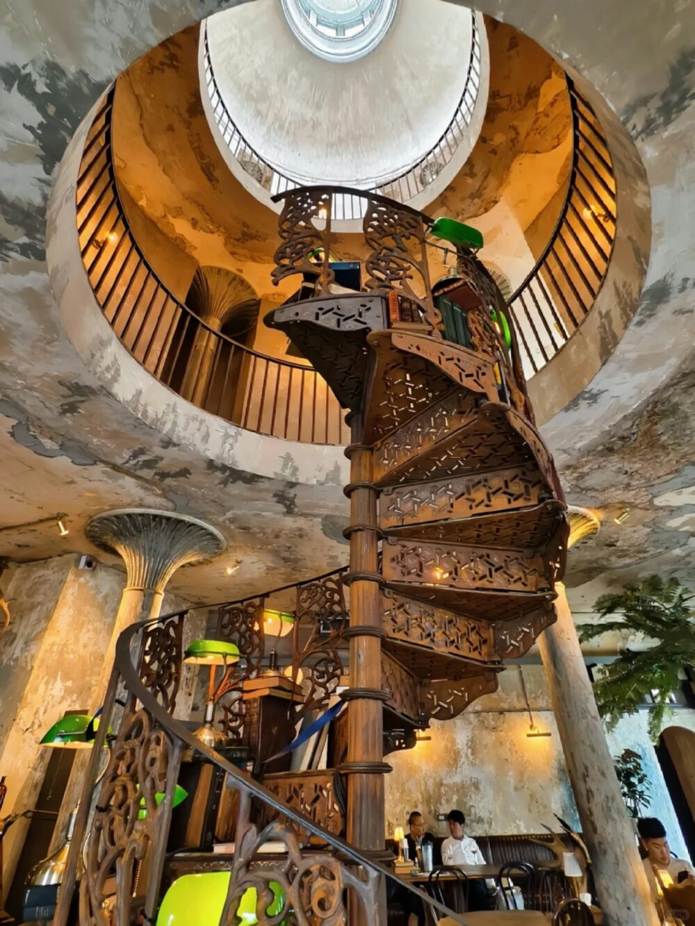 必去理由: 一秒走進霍格華茲。餐廳中央那一座充滿靈氣的「旋轉樓梯」是整間店的靈魂,搭配挑高的建築空間與斑駁牆面,簡直像極了《哈利波特》中的魔法學院場景,是老建築活化的極致代表。