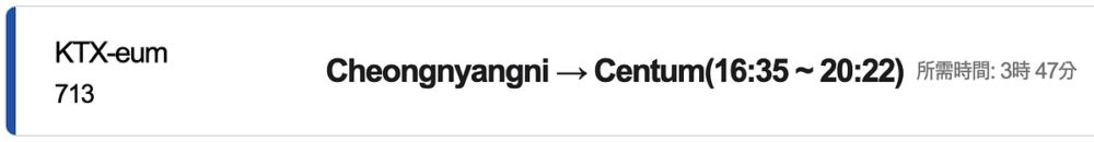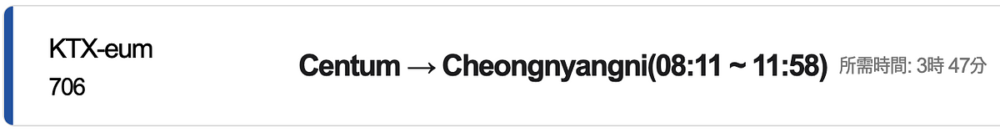 釜山 Centum 站→首爾清涼里站