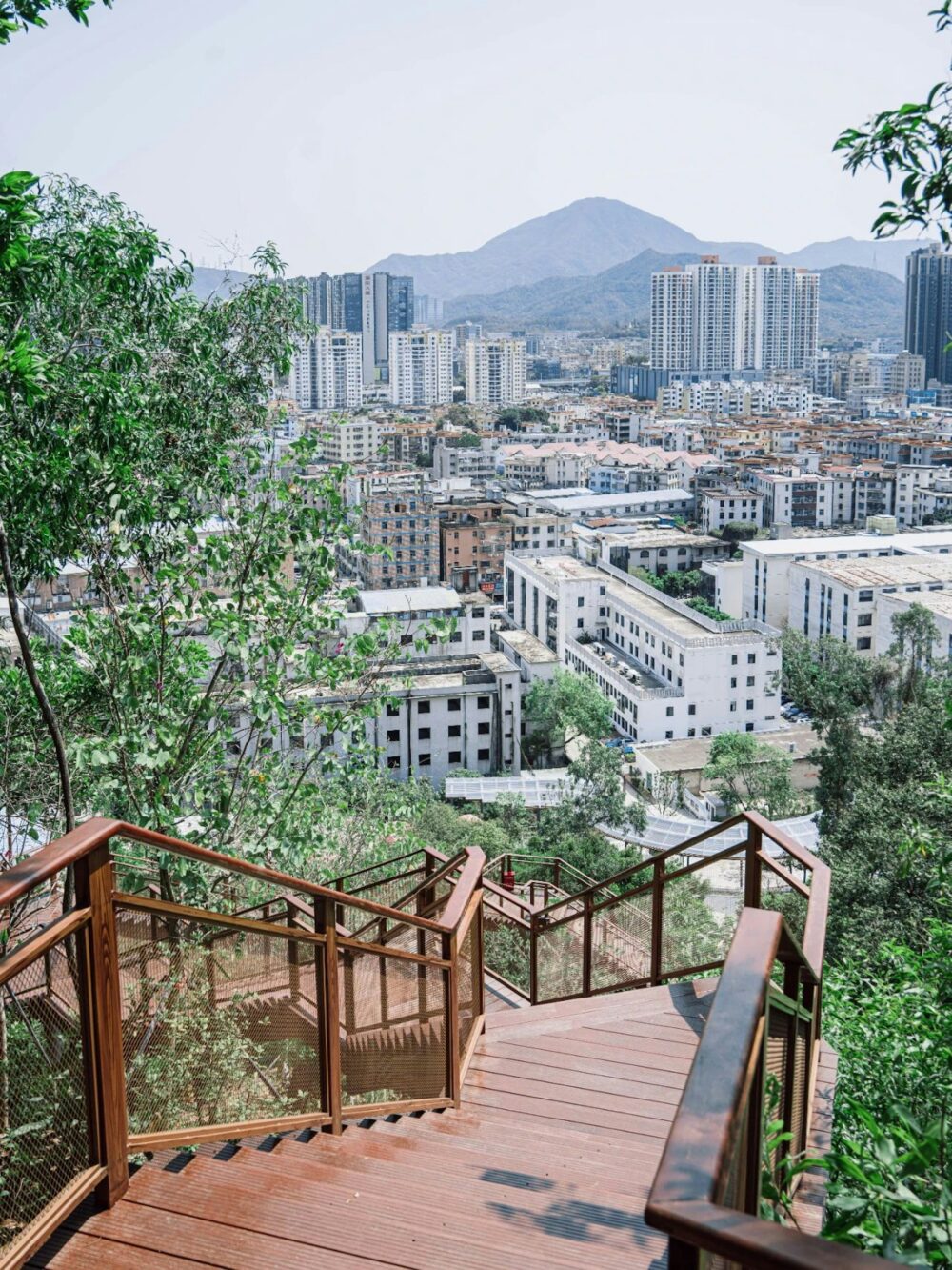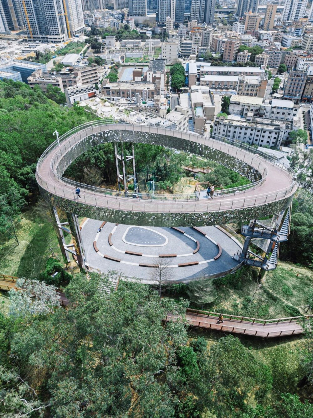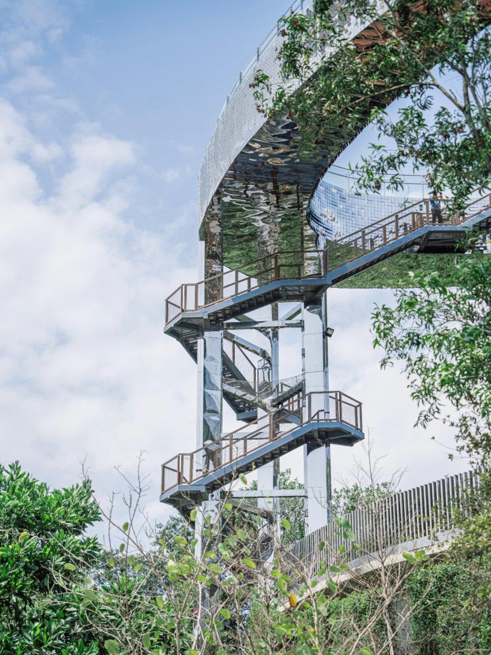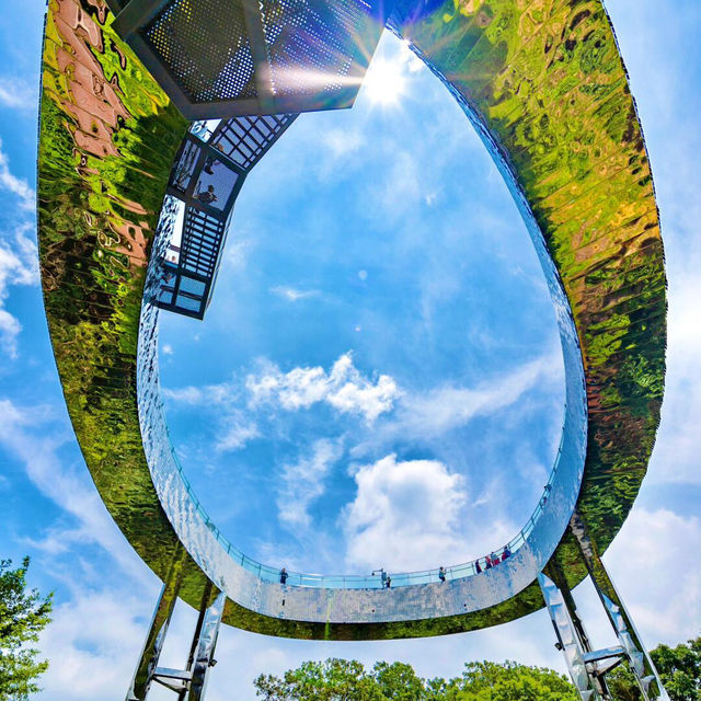 上到頂層嘅天空步道仲癲,外圍足足鋪滿咗一萬塊小鏡片🪞!企喺度可以俯瞰成個龍崗區嘅無敵City View同綠油油嘅森林。小編強烈建議大家傍晚時間去,夕陽打落去啲鏡面度閃Bling Bling,配埋個Magic Hour粉紫日落天空,浪漫氛圍感直接拉滿,出片率係100%!