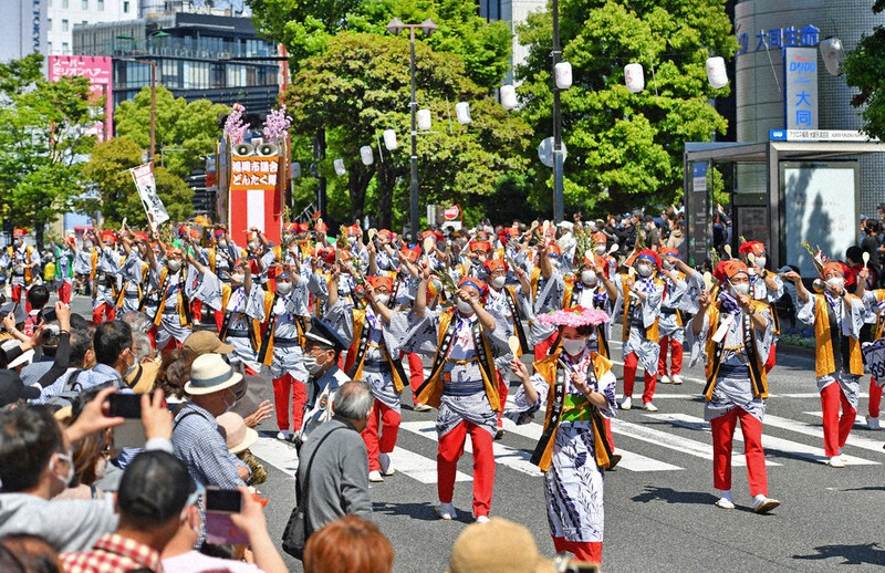 博多咚打鼓祭係福岡市最大嘅春季祭典,每年黃金週期間舉行,係日本最多人參與嘅祭典之一(每年約200萬人)。最大特色係「咚打鼓隊」——數千人穿著傳統服飾,邊行邊打鼓、吹笛、跳舞。