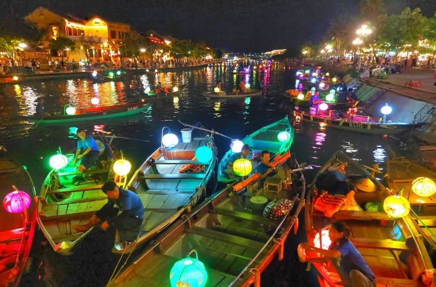 古城內的建築外牆統一漆成溫暖的蛋殼黃,搭配繁茂的三角梅與綠植,每一步都是風景。會安更被譽為「燈籠之鄉」,白天可見家家戶戶掛滿絲綢燈籠;入夜後成千上萬的燈籠亮起,將古城映照得如夢似幻,是會安最具標誌性的畫面。秋盆河(Thu Bồn River)穿城而過,傍晚時分可搭乘小船放水燈,將願望寄託於燭光之上飄向遠方。河岸兩側餐廳、咖啡店、裁縫店及手工藝品店林立,會安以手工訂製服裝聞名,只需一天即可量身打造一套西裝或奧黛(越南傳統服飾)。