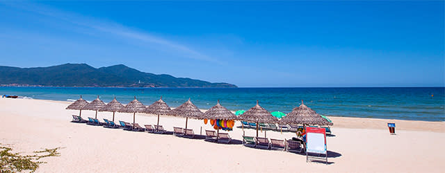 沙灘上可清楚眺望五行山的石灰岩輪廓,山海交織的景色是這裡獨有的視覺標誌。值得一提的是,這片沙灘在越戰時期曾是美軍的休憩地點,因而被稱為「中國海灘」。時至今日,它已褪去戰爭印記,成為旅人遠離塵囂、放空療癒的靜謐角落。