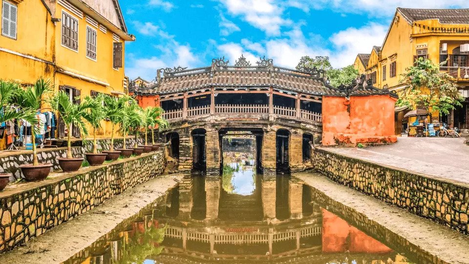 會安最迷人之處,在於不同民族建築的和諧共存。日式來遠橋(又稱日本橋)是古城的標誌,由日本商人建造,橋上建有寺廟,一端由猴子守護,另一端由狗守護,充滿文化象徵意義。旁邊的中式會館(福建會館、廣肇會館、中華會館等)雕樑畫楝,記載著華人商旅的歷史足跡;法式殖民建築則點綴其間,形成獨特的街景。