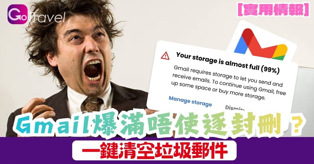 【實用情報】 Gmail爆滿唔使逐封刪?輸入「一隱藏指令」快速釋出容量!一鍵清空萬封垃圾促銷郵件